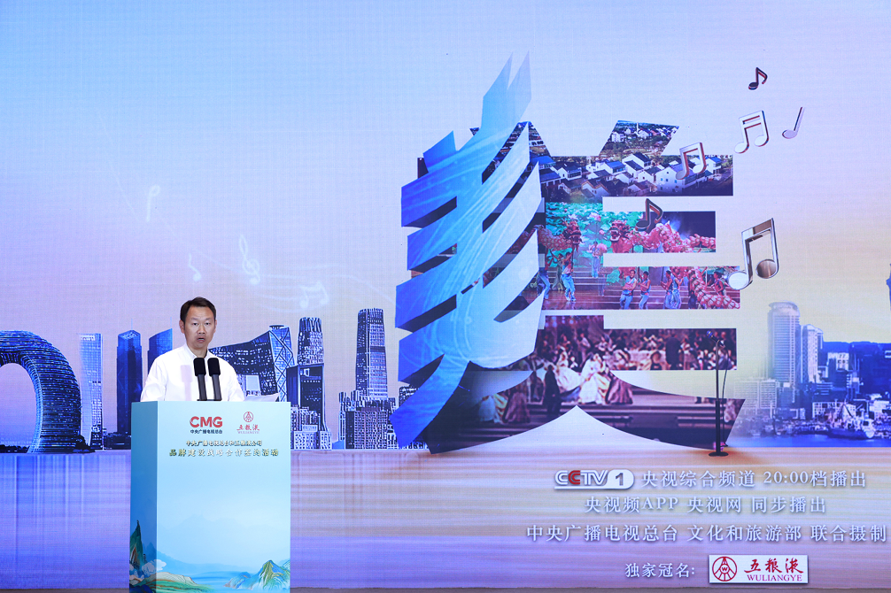 总台总编室副召集人兼综合频道负责人贺亚莉,中央广播电视总台、宜宾市委市政府、五粮液公司相关部门负责人参加活动。